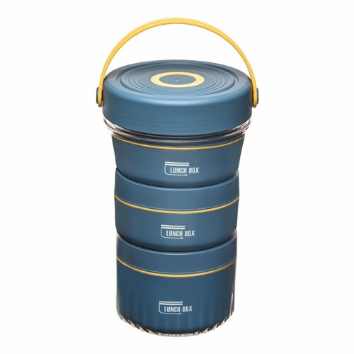 Ланч-бокс, 1.46 л, 3 секции, сохраняет тепло 3 ч, 12.5 х 29.5 см, темно-бирюзовый