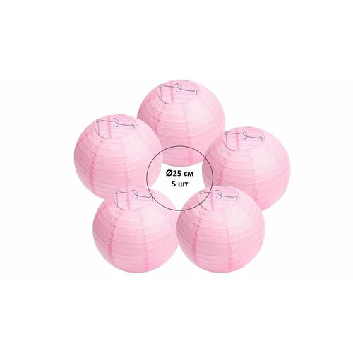 Набор подвесных фонариков, рисовая бумага, 5 шт. розовые