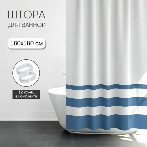Штора (занавеска) для ванной / душа водоотталкивающая тканевая с кольцами 180 x 180 см Пляж
