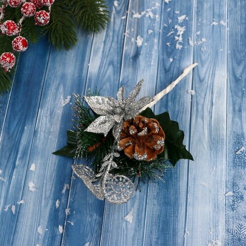 Декор Зимние грезы шишка серебряный цветок, 18 см