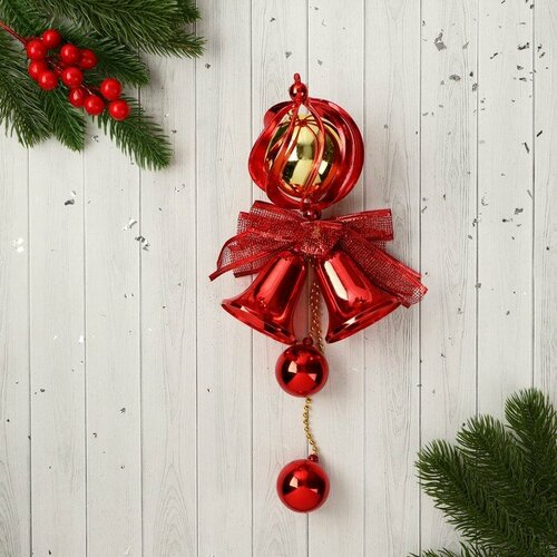 Украшение новогоднее Уютная сказка бантики бордо колокольчики, 17х39 см, золото