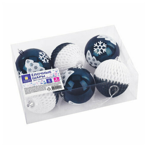 Шары ёлочные 6 шт, 8 см, "White Blue", пластик, цвет: темно-синий/белый, золотая сказка, 591992