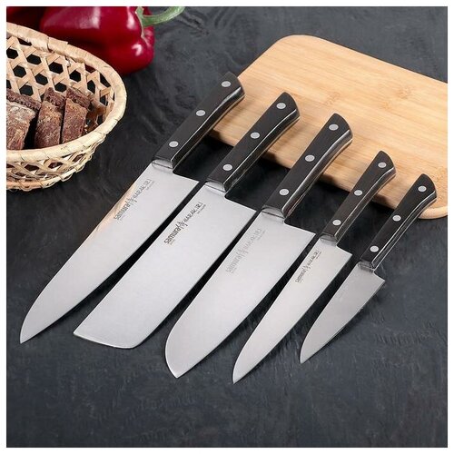 Набор кухонных ножей Hаrаkiri, 5 шт: лезвие 9,9 см, 15 см, 16,1 см, 16,5 см, 18,5 см, сталь аUS-8