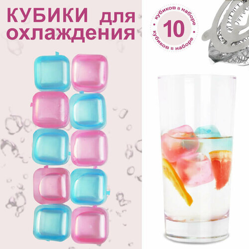 Набор кубиков для охлаждения напитков, 10 шт, пластик, розовый/голубой, 22021011
