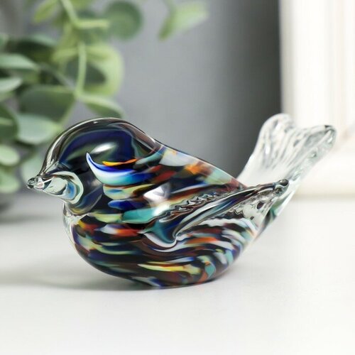 Сувенир стекло в стеклокрошку "Птичка разноцветная" L 100 h 60 мм микс