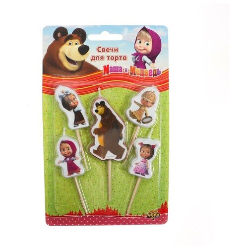 Свечи для торта «Маша и Медведь», на пиках, набор 5 шт.