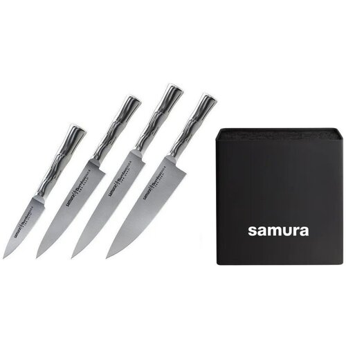 Набор из 4-Х кухонных ножей SAMURA BAMBOO и подставки универсальной квадратной черной