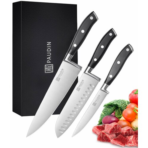 PAUDIN Pro / Набор ножей кухонных профессиональных шеф повара сантоку универсальный для мяса рыбы и овощей