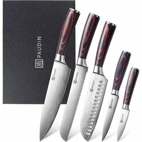 PAUDIN Pro / Набор ножей кухонных профессиональных шеф повара, сантоку, для хлеба, универсальный и фруктовый для мяса рыбы и овощей