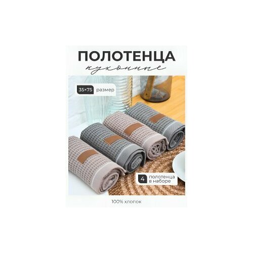 Комплект кухонных полотенец AStasiyaa, 35 х 75, 4 шт, 100 % хлопок, вафельный, хлопок без рисунка