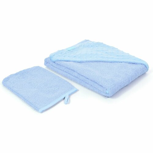 Полотенце с уголком и варежкой Nuovita GRAZIA 100x100 махра/вельбоа. (голубой / blu)