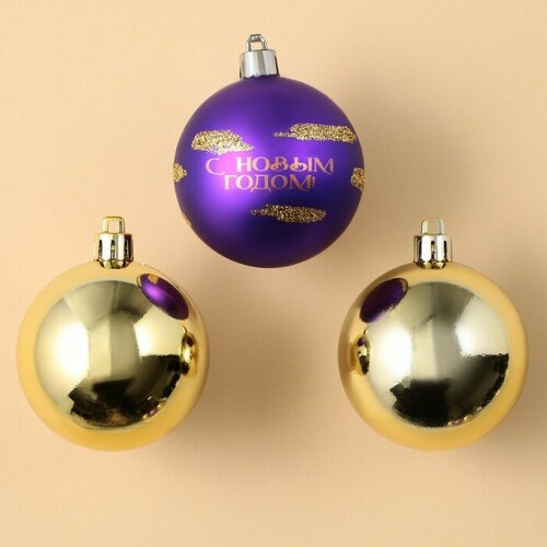 Набор ёлочных шаров «С Новым годом!», пластик, d-6, 3 шт, и золото