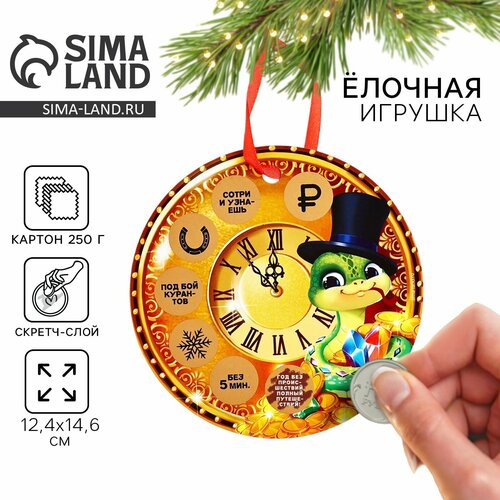 Ёлочная игрушка новогодняя со скретч-слоем «Новогодние часы», на Новый год,13,4 х 13,4 см