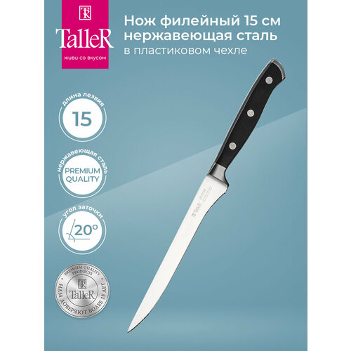Нож кухонный Нож филейный TalleR Across, лезвие: 15 см, черный