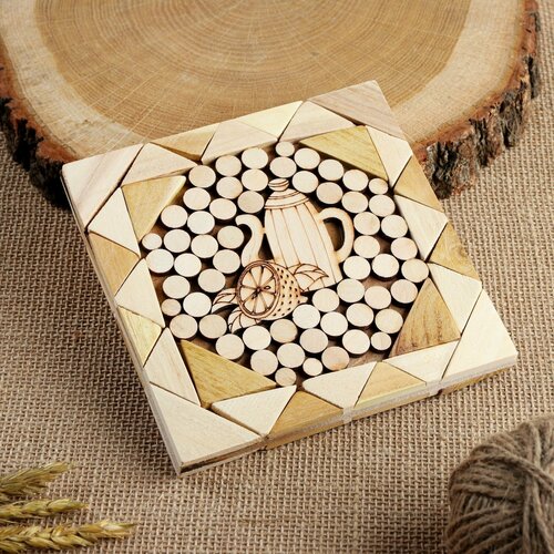 Подставка под горячее "Чайник", 15х15см, микс дерева