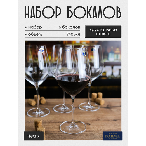 Бокалы для красного вина 290 мл 6 шт Crystalite Bohemia "Юпитер /Без декора" / 098575