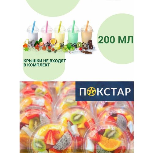 Стаканчики 50 шт одноразовые 200 мл кристалл прозрачный