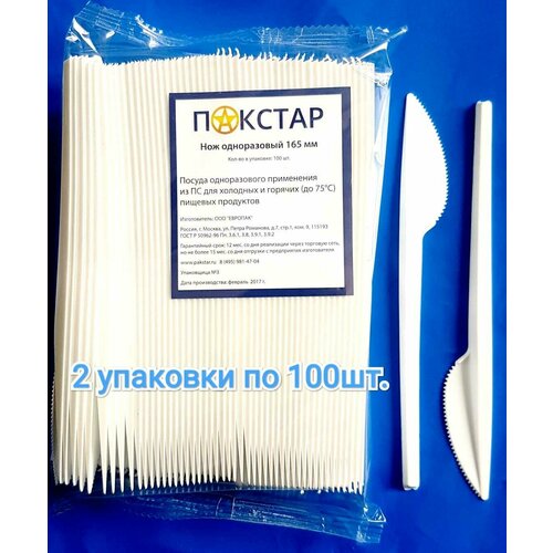 Ножи одноразовые PakStar 200 штук / Нож одноразовый белый 165 мм - 2 упаковки по 100 штук