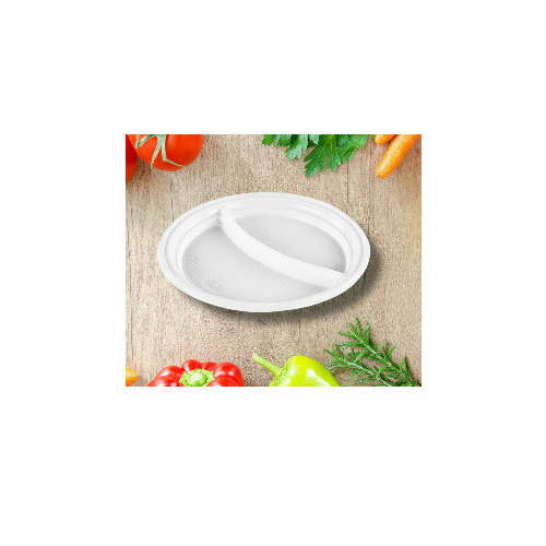 Тарелка двухсекционная 100 штук d-205 мм/ Тарелка одноразовая белая ПС "Полиэр"