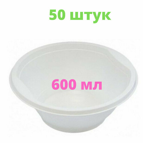 Миска одноразовая 600 мл 50шт, Миска одноразовая белая ПП "СПГ"