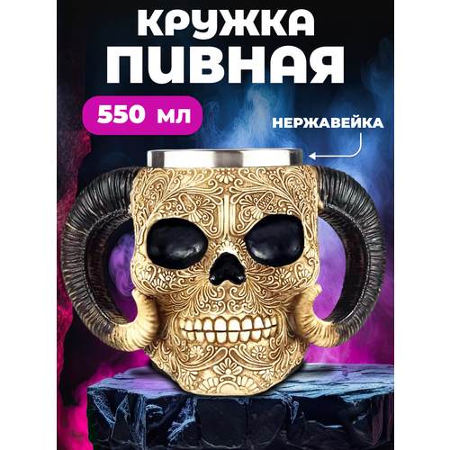 Подарочная пивная кружка с объёмным дизайном "Череп", 550 мл