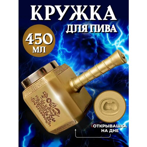 Подарочная пивная кружка, бокал пивной с 3D дизайном "Молот", 400 мл, золото