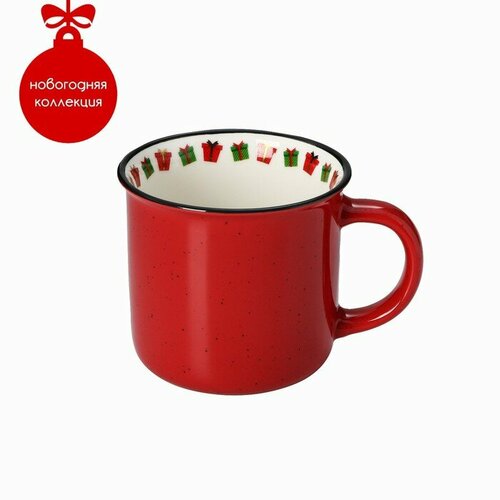 Доляна Кружка фарфоровая Доляна «Новогоднее настроение», 380 мл, цвет красный