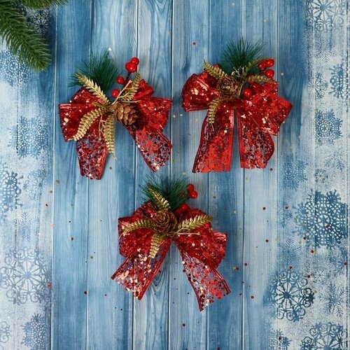 Украшение eлочное Еловая композиция (набор 3 шт) бант блеск шишка, 11х9 см