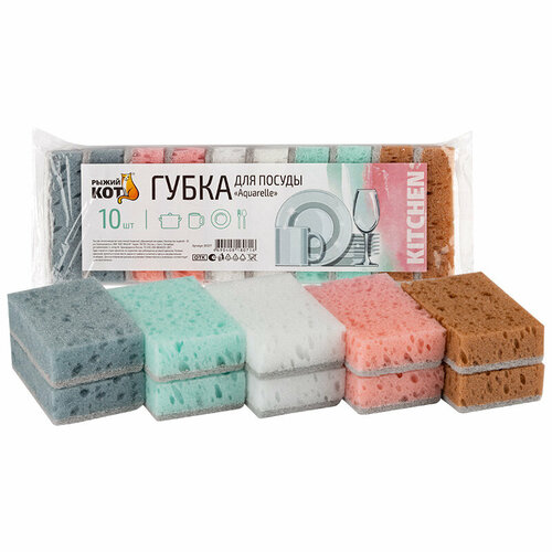 Губка для посуды , "Aquarelle" , в уп. 10шт , размер 93*65*27мм
