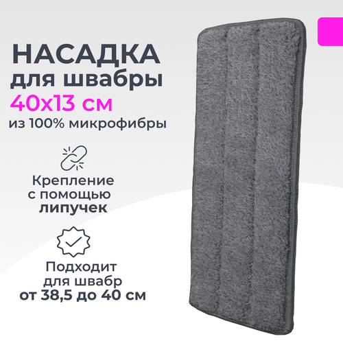 Насадка для швабры (сменная тряпка на швабру) из микрофибры предназначена для влажной и сухой уборки. Подходит для протирания и мытья любых поверхностей: линолеума, ламината, плитки, дерева и др. Сменная тряпка из микрофибры даже в сухом виде отлично собирает шерсть животных, пыль и мелкий мусор.