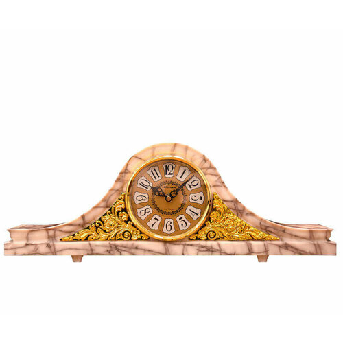 Фигурные настольные часы MIRRON P3011A ЗБ/Часы со слонами/Часы с узорами/Золотой цвет корпуса/Светлый циферблат/Часы в комнату, спальню/Домашний декор
