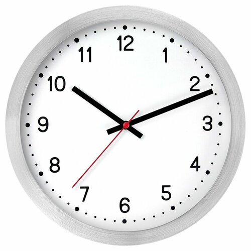 Часы настенные TROYKA 11170113, круг, белые, серебристая рамка, 29х29х3,5 см