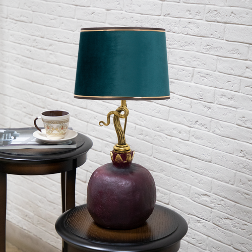 Настольная лампа Bogacho Гранат бордовая с бирюзовым абажуром Тюссо