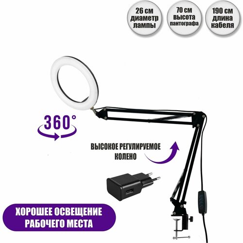 Настольная лампа светильник NBL-26A диаметром 26 см на пантографе с адаптером питания