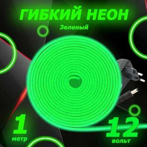 Светодиодный неон SMD 2835 (120 LED Зеленый) 12 x 6мм - Декоративная Лента на 1м с Блоком Питания