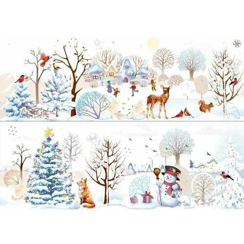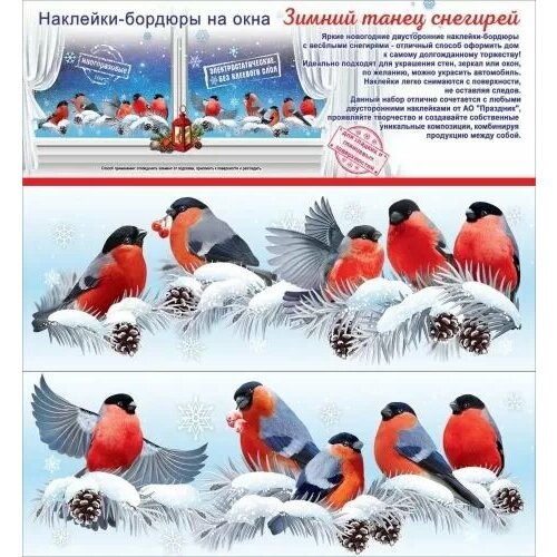 Праздник Новогодние наклейки-бордюры на окна "Зимный танец снегирей"
