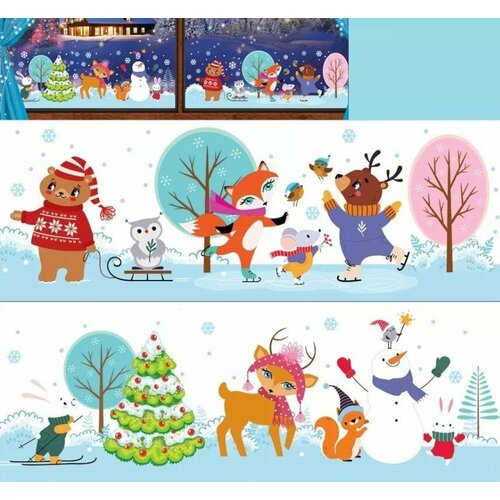 Праздник Новогодние наклейки-бордюры на окна (новогодние зверушки)