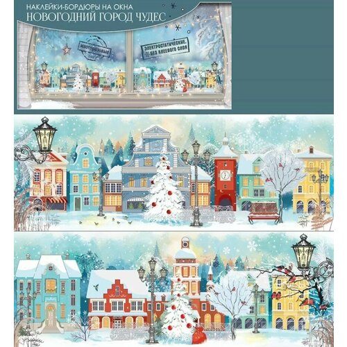Новогодние наклейки на окна "Город в ожидании чудес" комбинированный, разноцветный