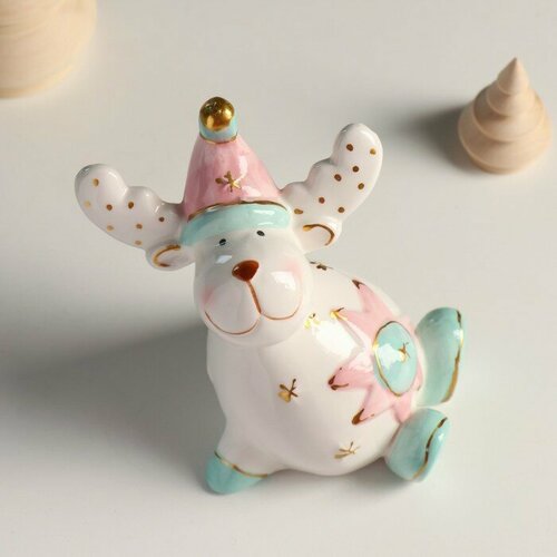 Сувенир керамика Лосик, розовый колпак, белые рожки в горох 11,1х11,3х7,7 см