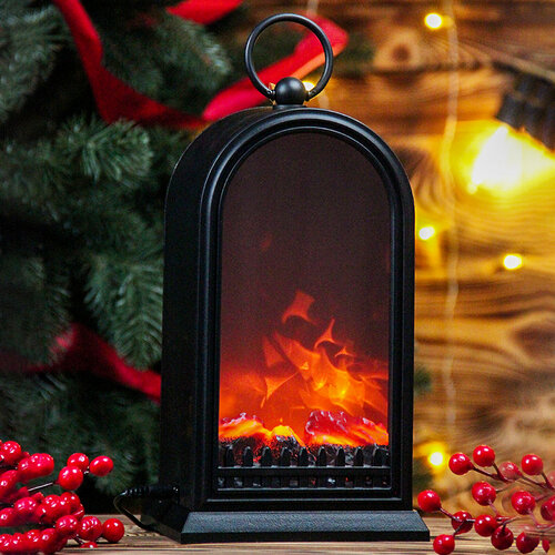 Светильник новогодний декоративный "Камин-фонарь" 30см, светящийся, USB
