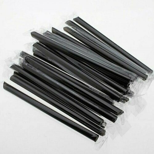 Трубочки 500 штук черные в индивидуальной упаковке 24см х 8мм, Трубочки длиной 24 см, диаметр 8 мм.