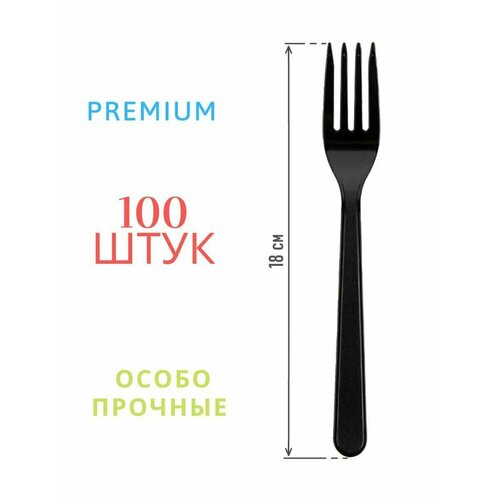 Вилки одноразовые PakStar - Premium 100 штук/ Вилка одноразовая черная 180мм, по 100шт.