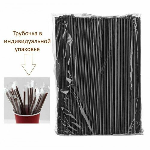 Трубочки 500 штук черные ПП в индивидуальной упаковке 24см х 8мм, Трубочки длиной 24 см, диаметр 8 мм.