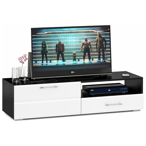 Тумба под ТВ Ларго 1,4, цвет корпус венге/фасады МДФ белый глянец, ШхГхВ 140х46х35 см, НЕ универсальная сборка