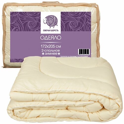 Одеяло 2-спальное, 172х205 см, Овечья шерсть, 400 г/м2, зимнее, чехол микрофибра, кант
