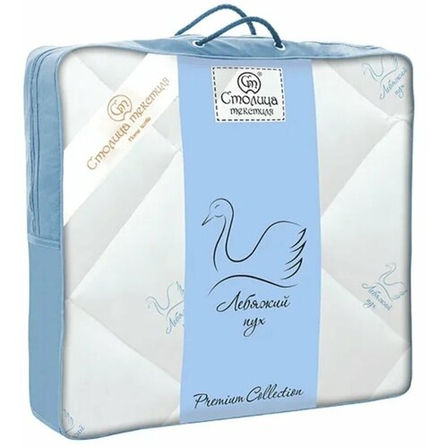 Одеяло 1.5-спальное, 140х205 см, Премиум, Лебяжий искусственный пух, 300 г/м2, всесезонное, чехол хлопок, кант, Столица Текстиля