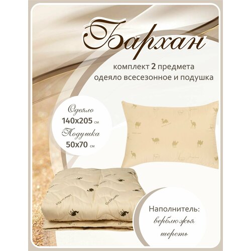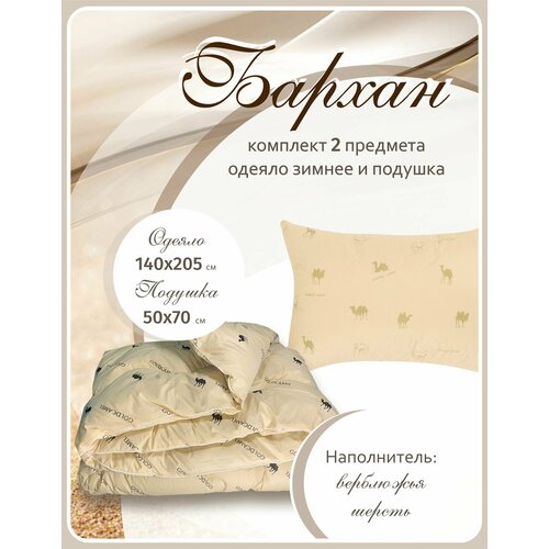Одеяло 1.5 всесезонное и подушка 50х70 верблюжья шерсть