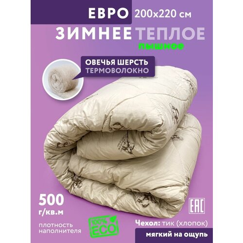 Одеяло Евро 200х220 зимнее Овечья шерсть