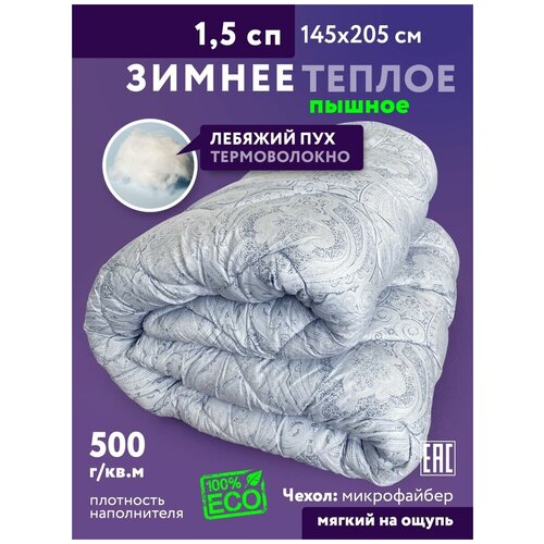 Одеяло 1.5 спальное Зимнее Лебяжий пух, теплое легкое, 145х205. Одеяло Зима. Одеяло пышное. Наполнитель (500г/м2) - синтетический л...
