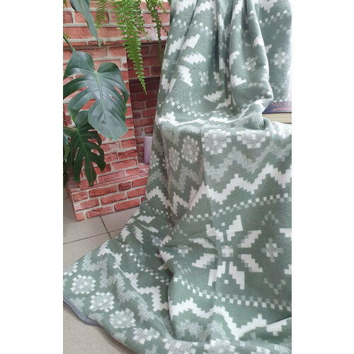 Одеяло 100% хлопок жаккард 140х205 Снежинки (зелёный) в канте